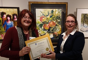 Wreczenie Drugiej nagrody za obraz zatytulowany "Les pommes en lumière" w ramach rocznego konkursu de Blainville-Art